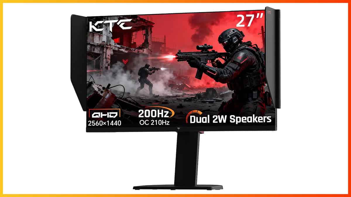 The KTC 27M1 is a 27″ 1440p 200Hz (210Hz via factory-overclock) gaming monitor based on an IPS panel with fast response time and wide color gamut. It also boasts an eSports-style design and plenty of gaming features.