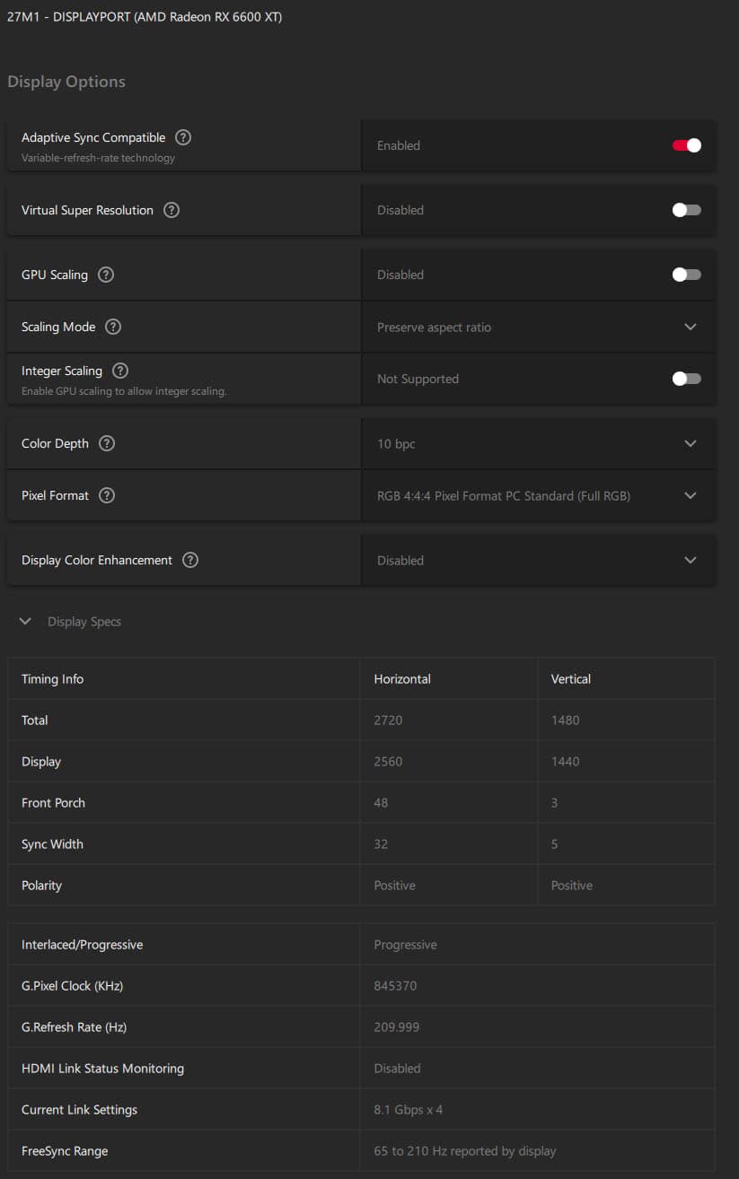 | Adaptive-Sync | FreeSync Premium (48-210Hz) |
