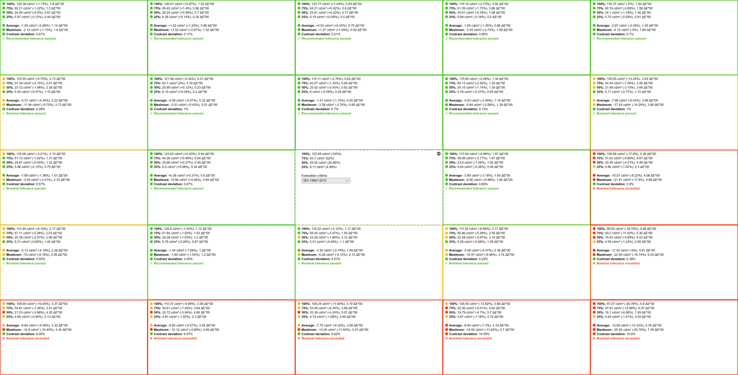 We also tried using a software clamp, such as the one available in AMD GPU drivers, the novideo_srgb tool for NVIDIA or Windows 11 Color Management, but it resulted in a high Delta E of 1.92 average and 5.97 maximum.